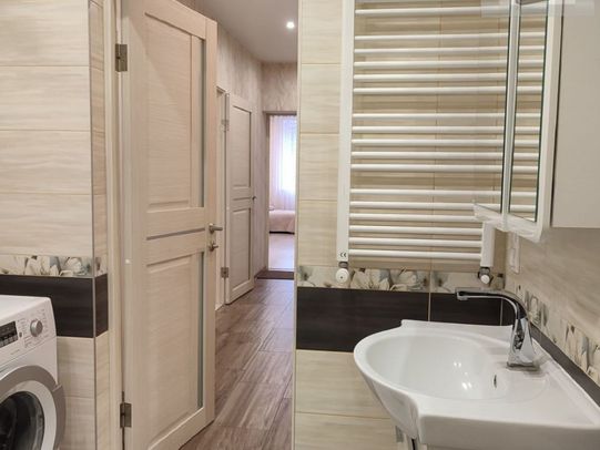 Современный эргономичный ремонт, прекрасно организованное пространство. Остается все, что Вы видите на фото. Встроенная кухня ( посудомоечная машина, духовка, холодильник, вытяжка)