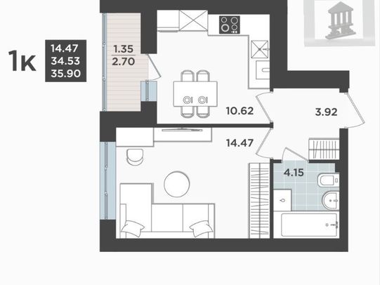 - 34.5 м²