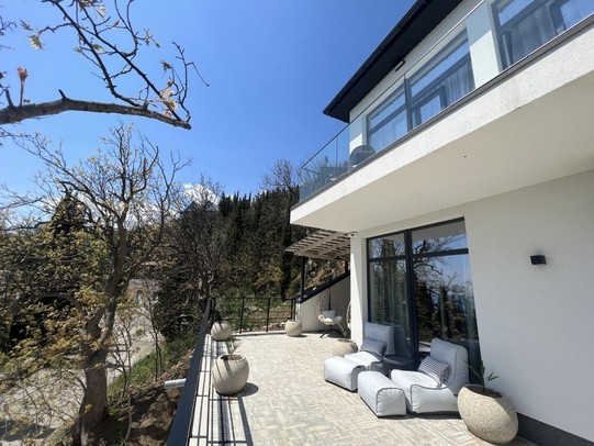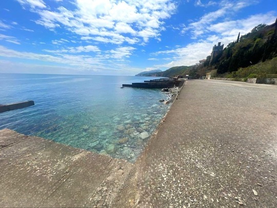 Двухэтажный дом в стиле «хай-тек», общей площадью 110м2, на участке 2 сотки, находится в Профессорском уголке, пригороде Алушты, в тихом, спокойном месте в 75 метрах от берега моря. Море, рядом с домом так, что слышен шум прибоя: пляжи галечные, немноголюдные, без инфраструктуры: только тишина и природа. В пешей доступности от дома, (10-15 минут пешком), - Морской уголок, где городские галечные пляжи с инфраструктурой. Возле дома есть место для парковки нескольких машин.