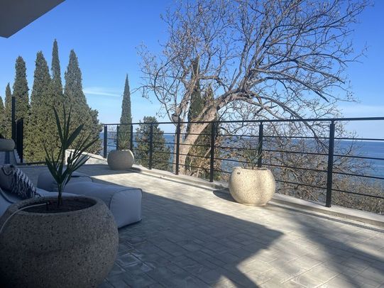 В каждой из спален: двуспальная кровать с ортопедическим матрасами, плазменный телевизор, вместительный шкаф для одежды, кондиционер, плотные шторы блэкаут; на этаже, - санузел с ванной и панорамным видом на море.