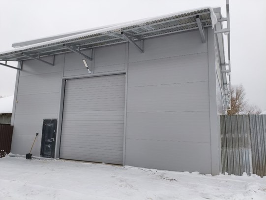 Облицован сэндвич панелями.